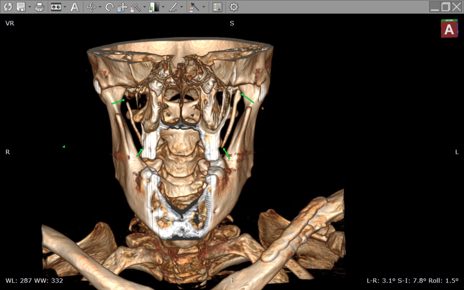 @KarenG you’ve found it! Definitely compression between styloids and C1. So definitely will want to pursue surgery with a surgeon who is experienced with cutting the styloids above the level of C1! Compression appears more severe on his right side (left side of image where you circled)