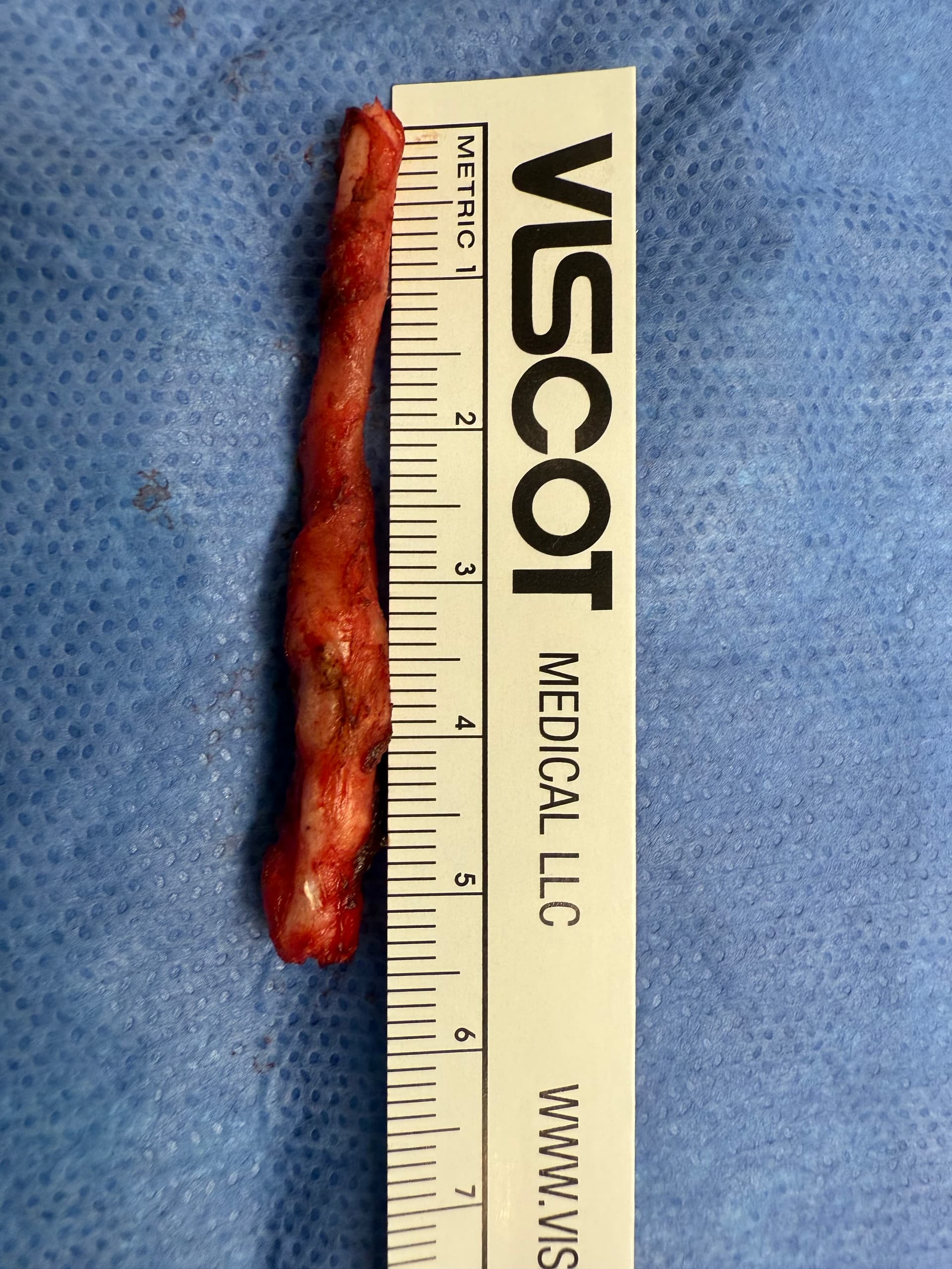 Today was 5 weeks post op appointment. Here is a pic of the ginormous calcified styloid removed from my neck. There is one small piece missing from the image, clearly it was quite large totally 6cm long and almost 1cm wide, causing lots of compression.