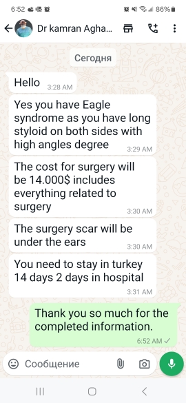 Also, contacted Dr. from Turkey. They answered through Whatsapp that the doctor will look at my X ray tomorrow morning.