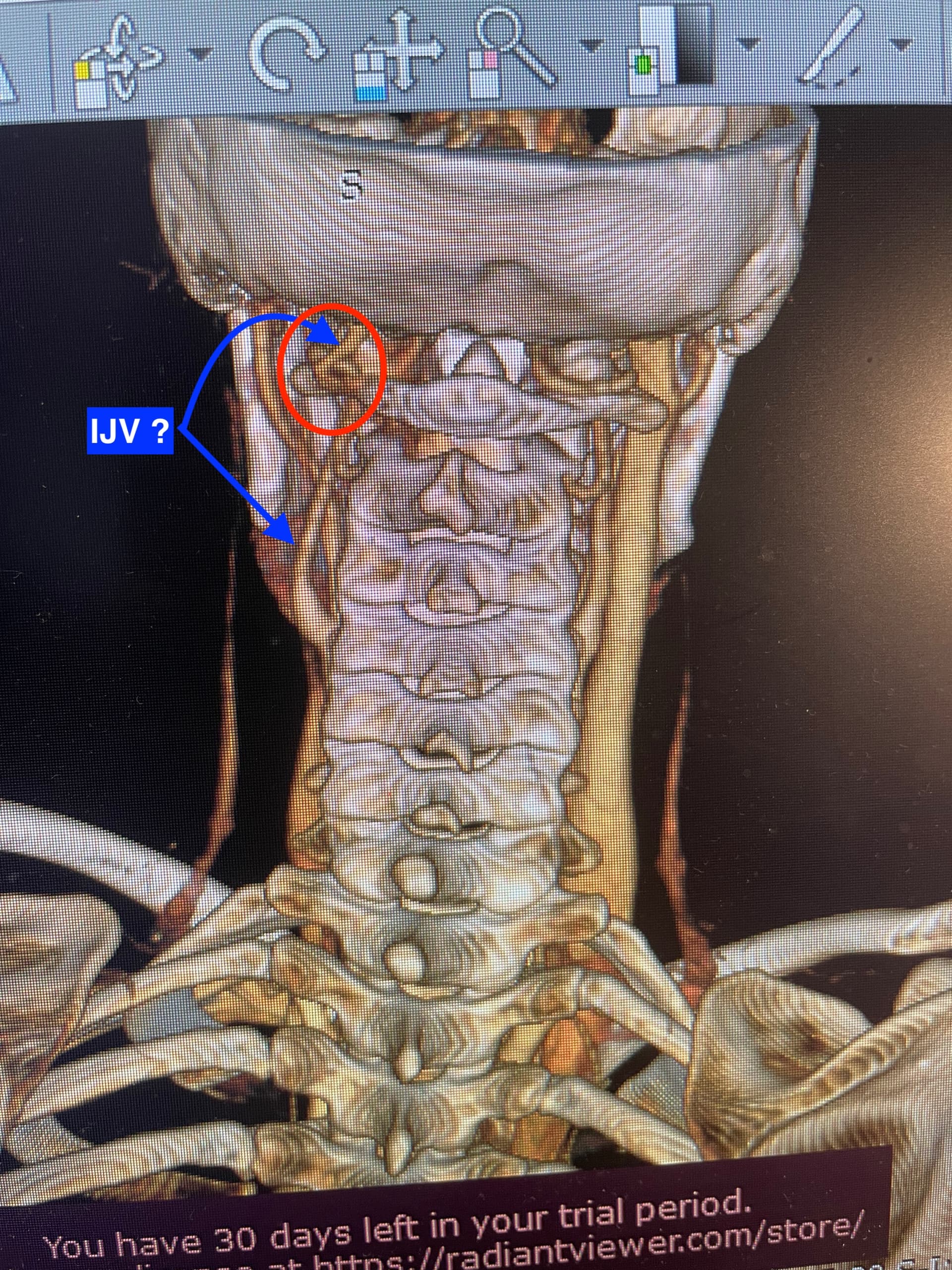 The right side IJV is pretty big, it looks like the C1 process is pushing a bit on it but doesn’t look too compressed compared to some we’ve seen…the left side is a real jumble as you say! The IJV just disappears…